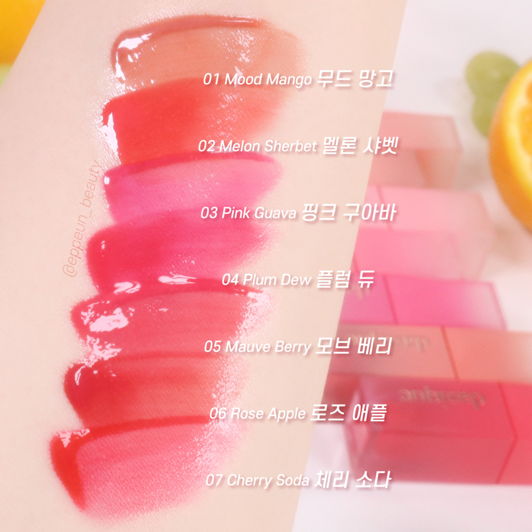 데이지크 워터글로스 틴트 5종 전색상 리뷰 : 수분 머금은 물빛광택 틴트
