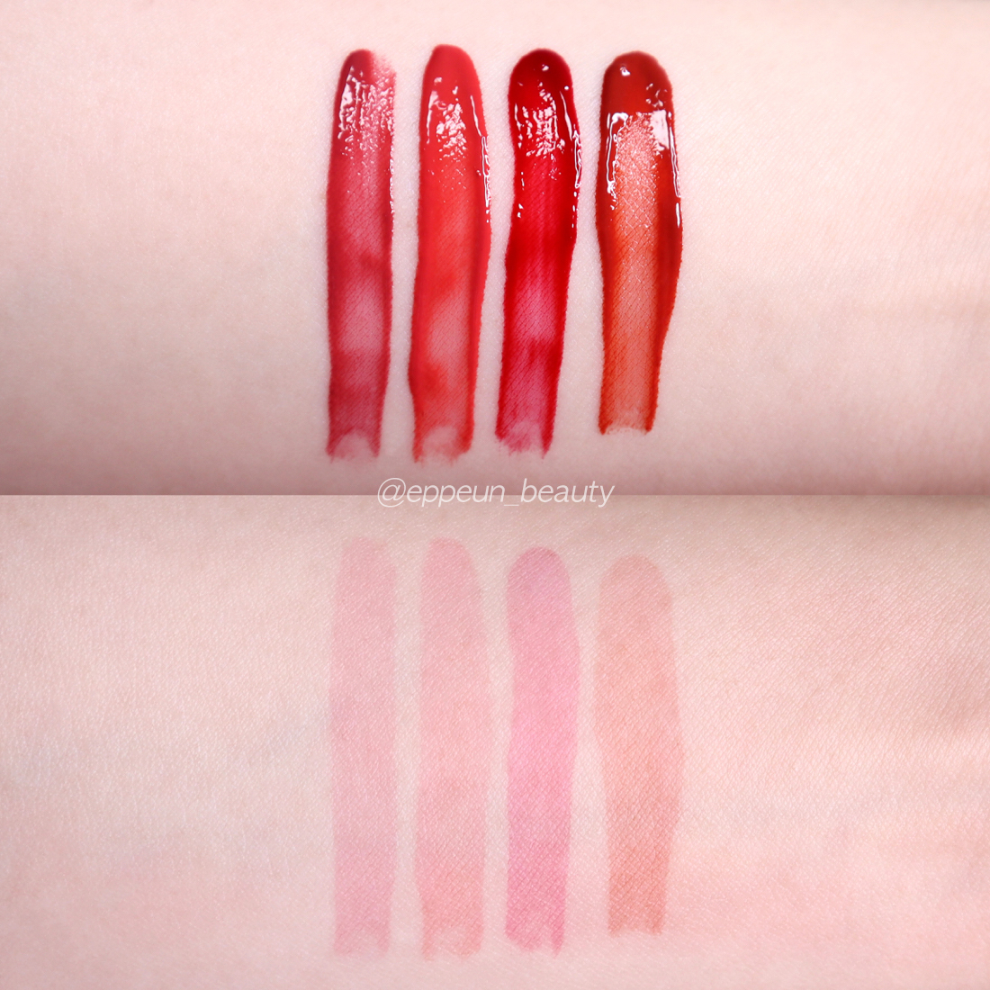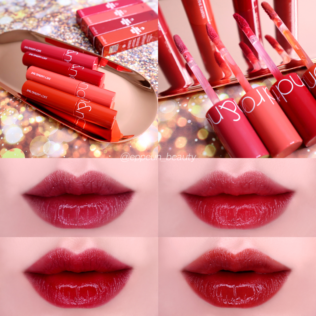 롬앤 쥬시 래스팅 틴트 : 4종 전체 발색 비교