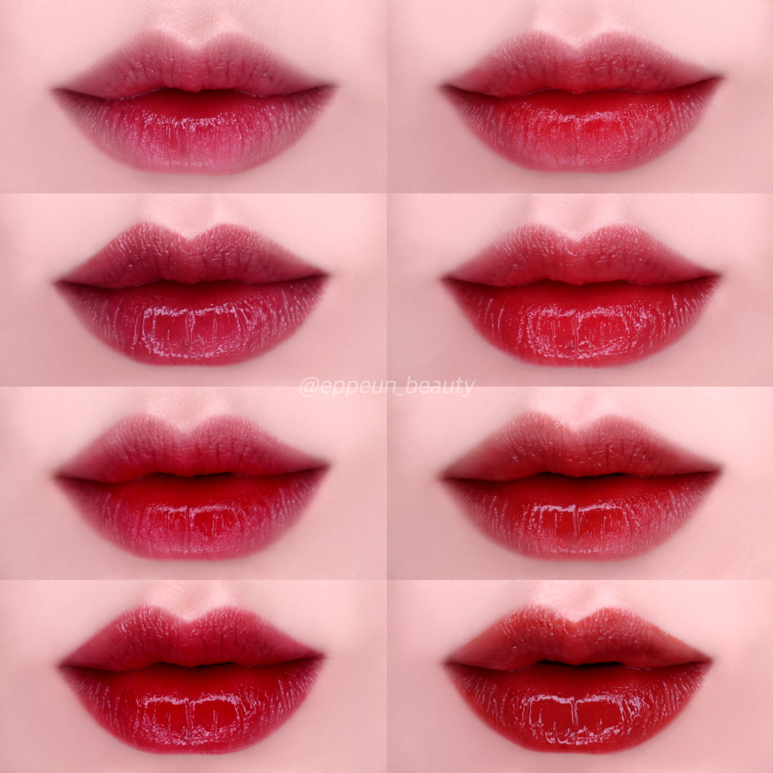 왼쪽 줄(순서대로 피그피그, 체리밤)이 좀 더 겨울쿨톤(겨울딥)에 잘 어울리는 컬러가 되겠고 오른쪽 줄이(순서대로 핑크펌킨, 잇도토리) 가을딥에 잘 어울리는 컬러들이 되겠다. 구매 전 참고하세용~^^