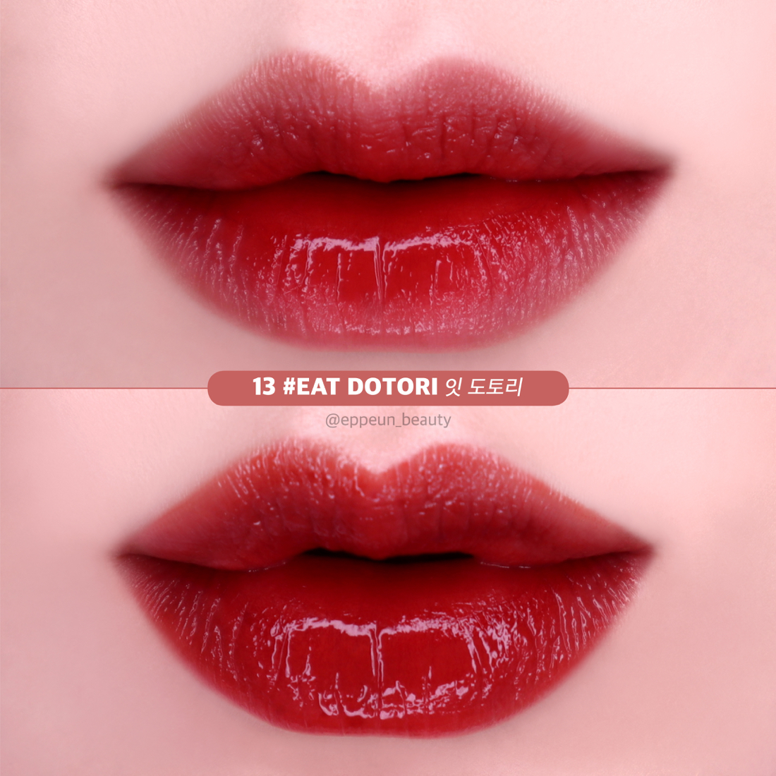 잇 도토리는 입븐언니가 오늘 리뷰한 쥬시 래스팅 틴트 4종 중에서 제일 웜톤에 가까운 컬러다. 핑크펌킨보다 훨씬 더 웜한 컬러. 잇 도토리는 가을 딥 걸친 입븐언니도 풀립보다는 단독 사용 시 그라데이션으로 많이 써지게 되고 아니면 다른 컬러랑 섞어 발라야 되는 컬러다.