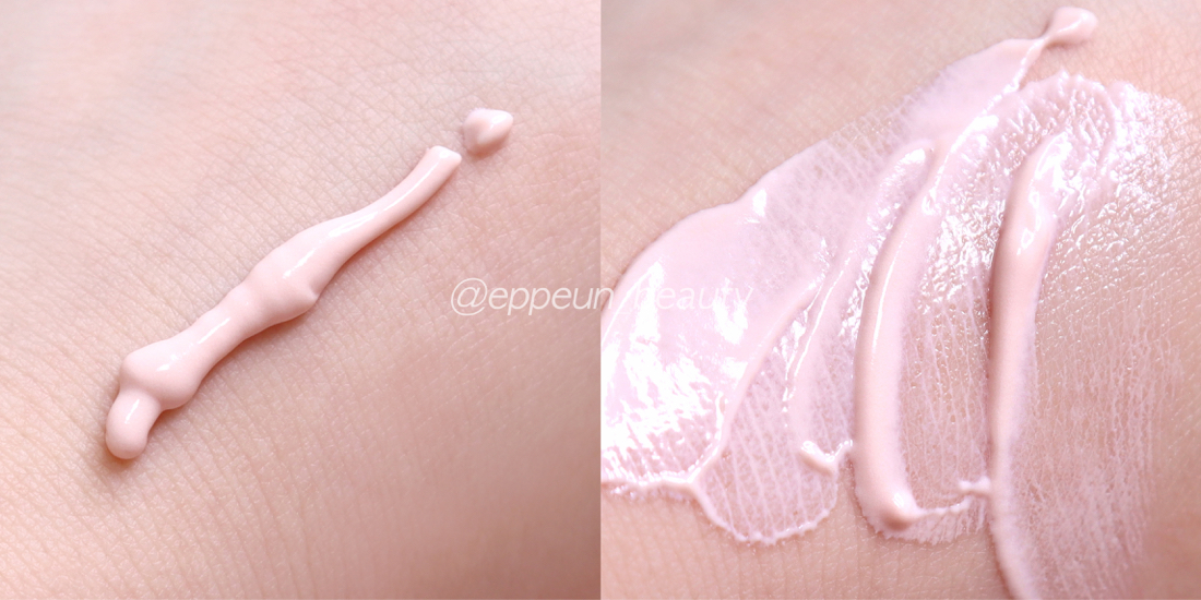 한번 적당한 힘을 주고 푹 자면 저정도 양이 나온다. 선크림은 톤 업 기능이 있어서 선크림 제형이 약간 살구+핑크색을 띤다. 살짝 펴 발라 봤는데 수분감 팡팡한 게 느껴지시나요?