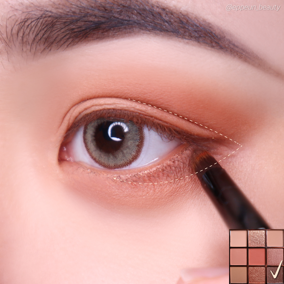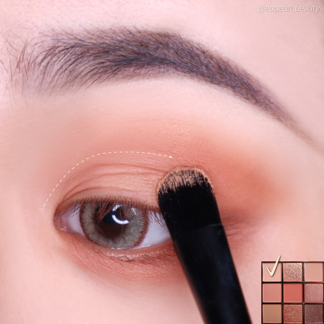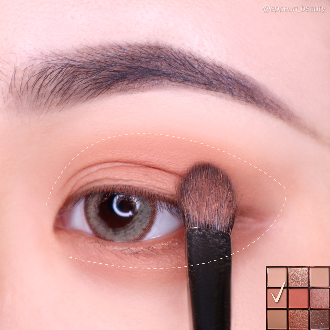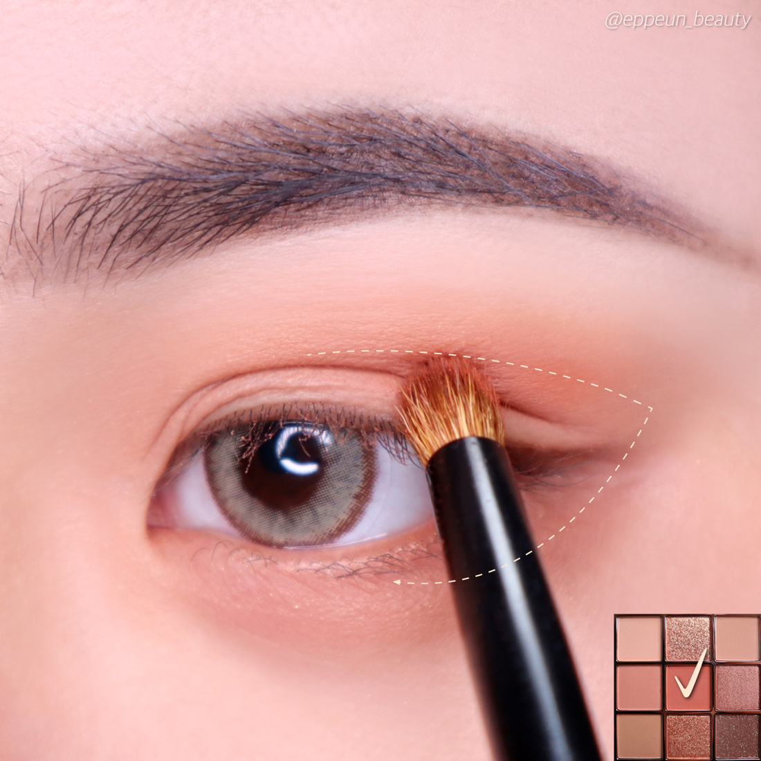 요즘 제일 자주하는 데일리 눈화장법을 활용해서 메컵해보겠슴! 우선 제일 많이쓰는 치엘로 컬러를 베이스로 PICK! 점선 영역 좀 안쪽으로 발색한다음에 블렌딩 브러쉬로 슥슥 색을 퍼트려 주세요~! 나머지지 가이드도 마찬가지로 참고!