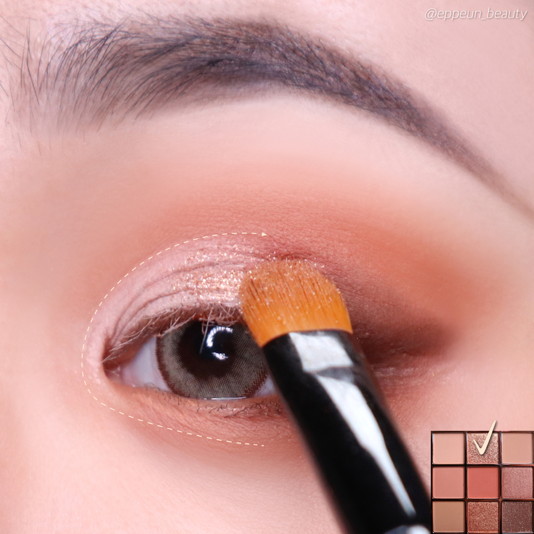 제일 밝은 컬러로 눈두덩이 제일 튀어나온 부분에 슥슥 해주세요~ 바쁘면 딱히 안해도 되는 과정이지만 나중에 펄글리터 포인트 올려줄때 가이드라인이 될 수 있고 발색도 더 잘됩니더.