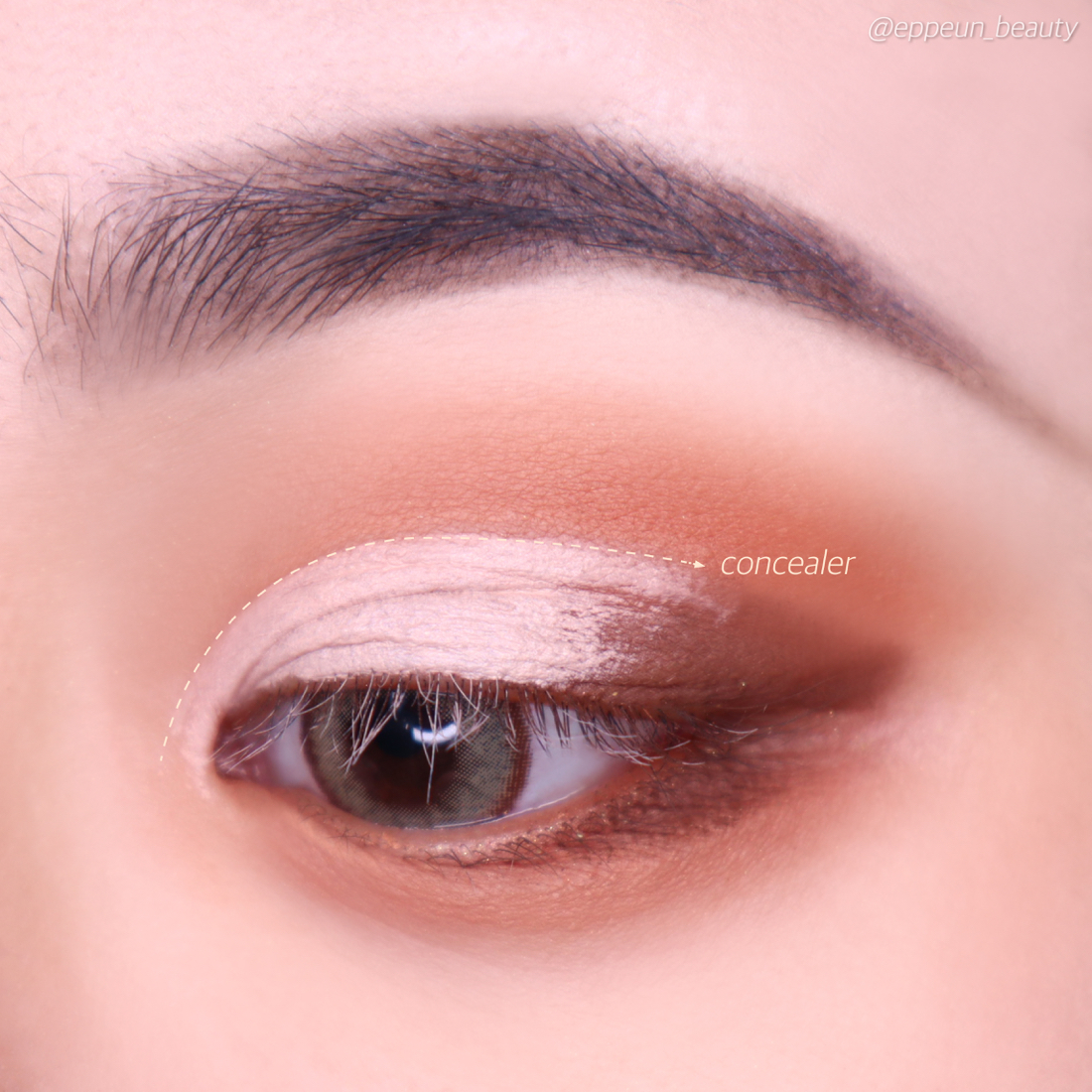 눈두덩 밝은컬러나 펄글리터 포인트 줄 부분 가이드로 컨실러 슥슥 발라주기! 요것도 생략가능하지만 좀 더 베이스 컬러와 펄글리터 경계 뚜렷하게 발색해 해주려면 컨실러 발라주세요~ 섀도우만 사용하는거보단 지속력도 높여준답니다!🙌
