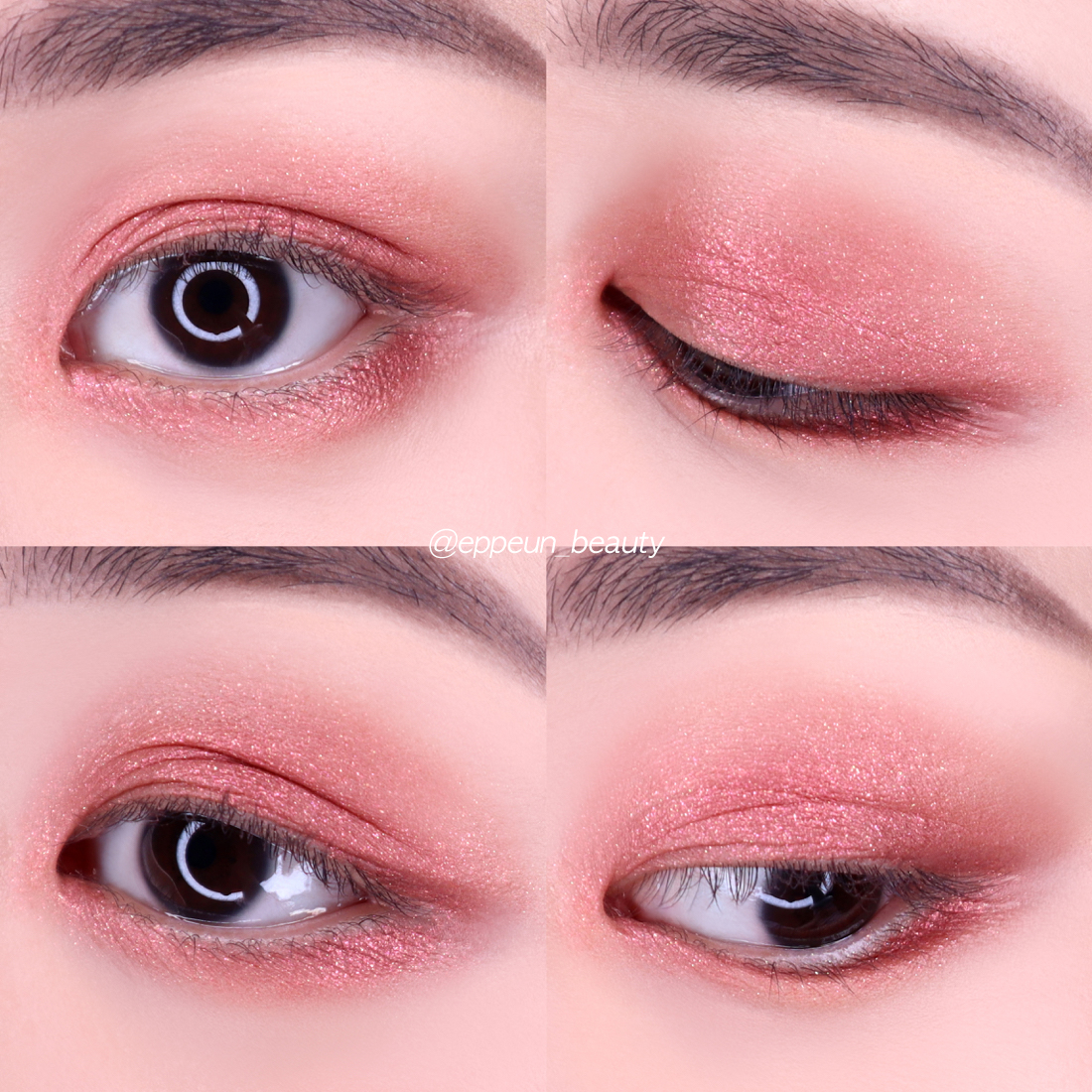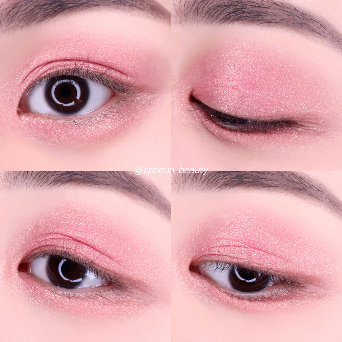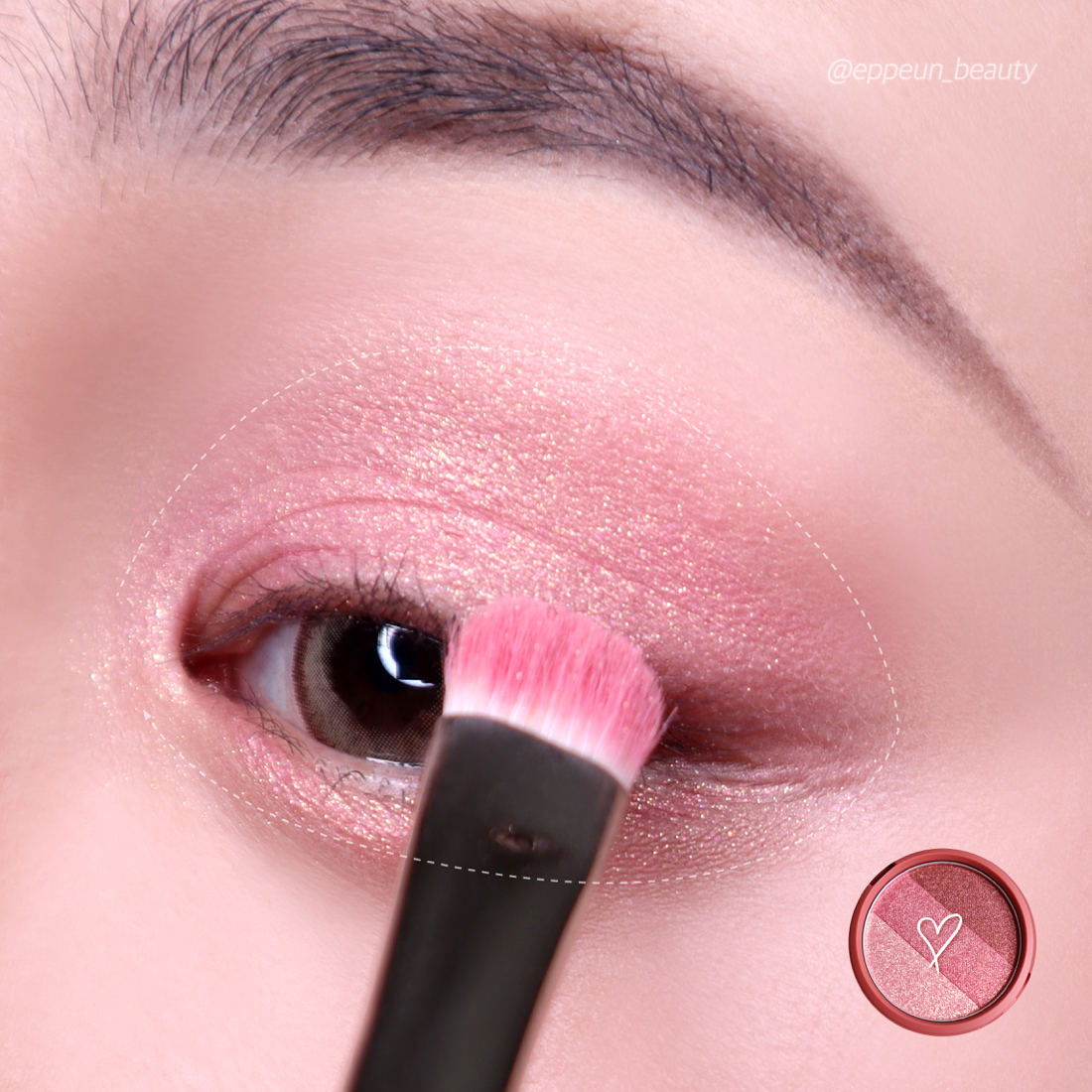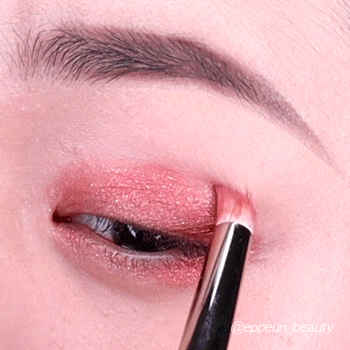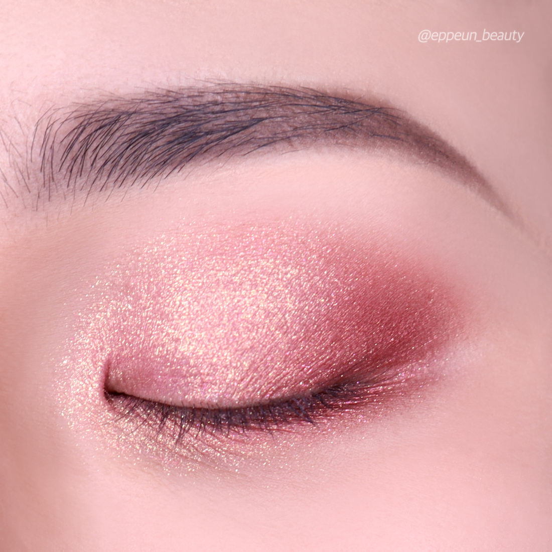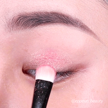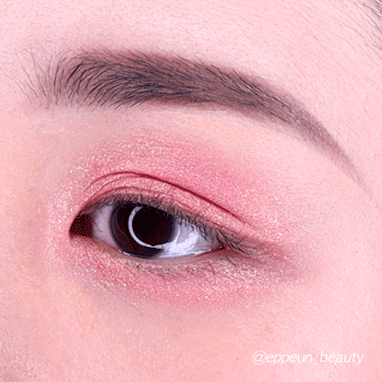 중간톤에 해당하기 때문에 비교적 넓은 부위로 바르기에 좋은 컬러다. 단독으로 사용해도 좋지만 약간 눈 부어 보일 수도 있으니 주의! 넓은 면적에 사용될 컬러라서 조금 더 모가 풍성하면서 납닥한 브러쉬로 발색해줘봤음.