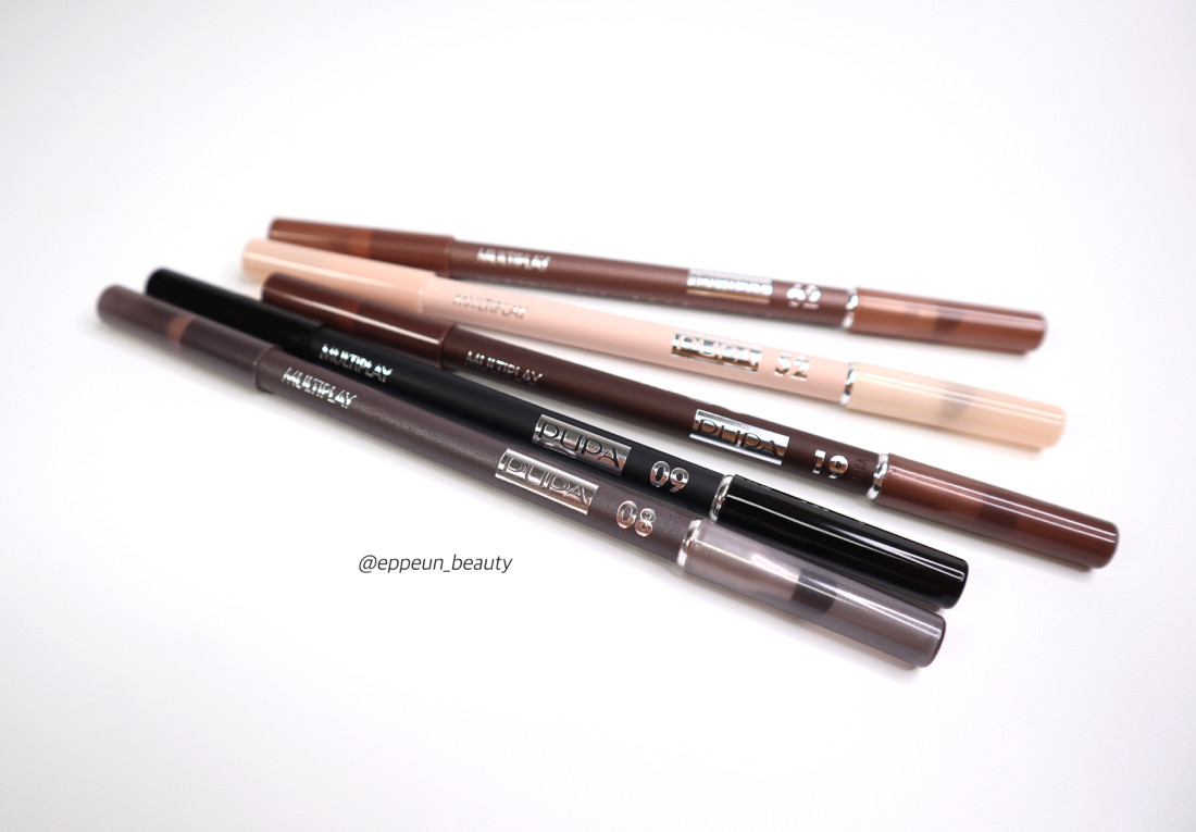 평소 아이메이크업할 때 쉬머/펄 섀도 자주 사용해서 왠지 브라운 계열의 뿌빠 멀티플레이 아이펜슬들을 자주 쓰게 될 듯. 특히 다크얼쓰나 베이직 번 제일 활용도 높아보인다.