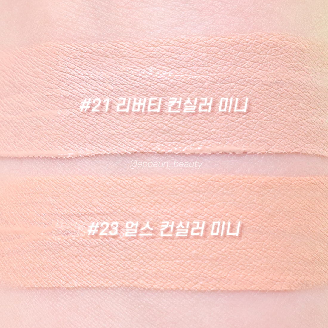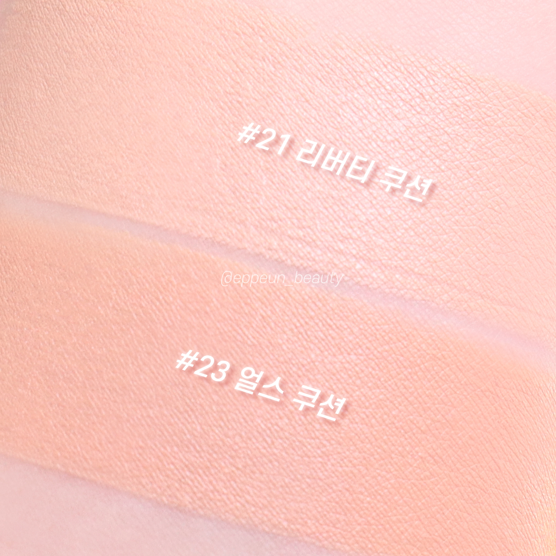 21호 리버티는 화사하게 혈색 살려주는 뉴트럴 핑크 아이보리. 핑크랑 아이보리 비율 적절하게 섞인 듯. 핑베가 아주 살짝 들어가선지 밝은 느낌이 들었나봄. 23호는 미디엄 베이지 색상.
