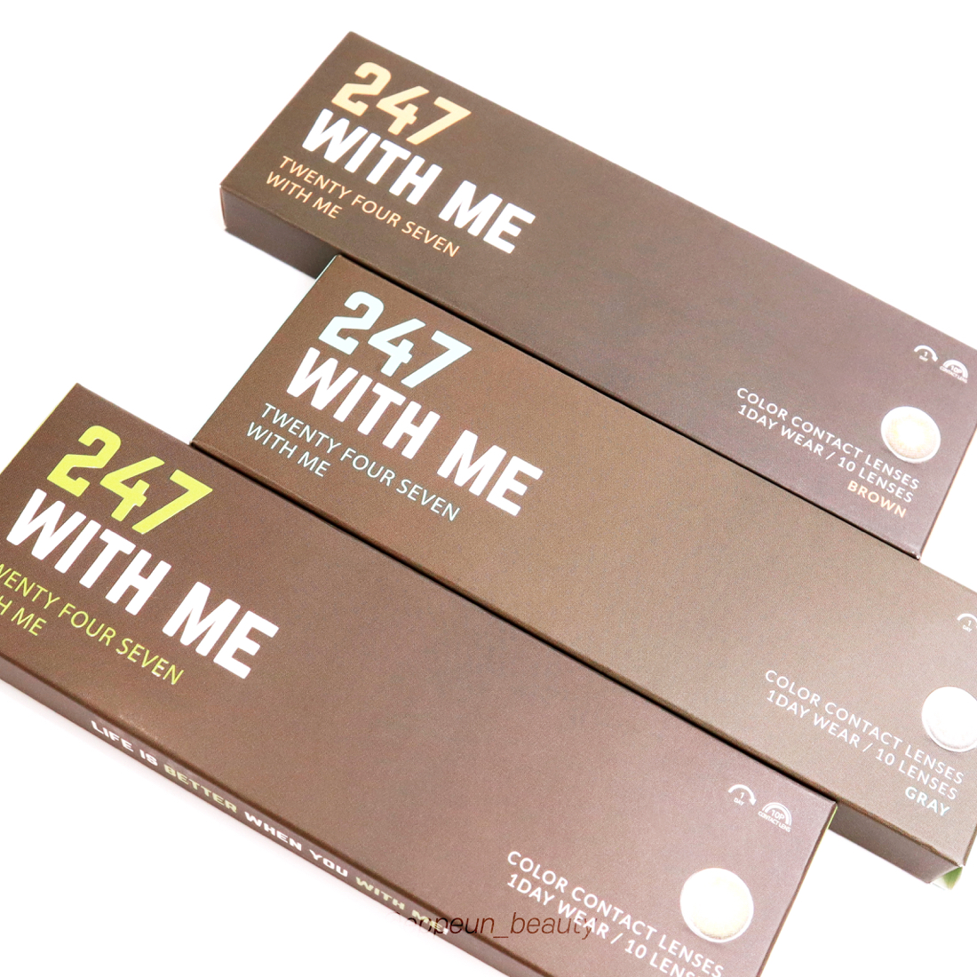 오늘 소개할 렌즈는 바로 렌즈타운 247 위드미 브라운, 그레이, 올리브 컬러 렌즈가 되겠습니다!