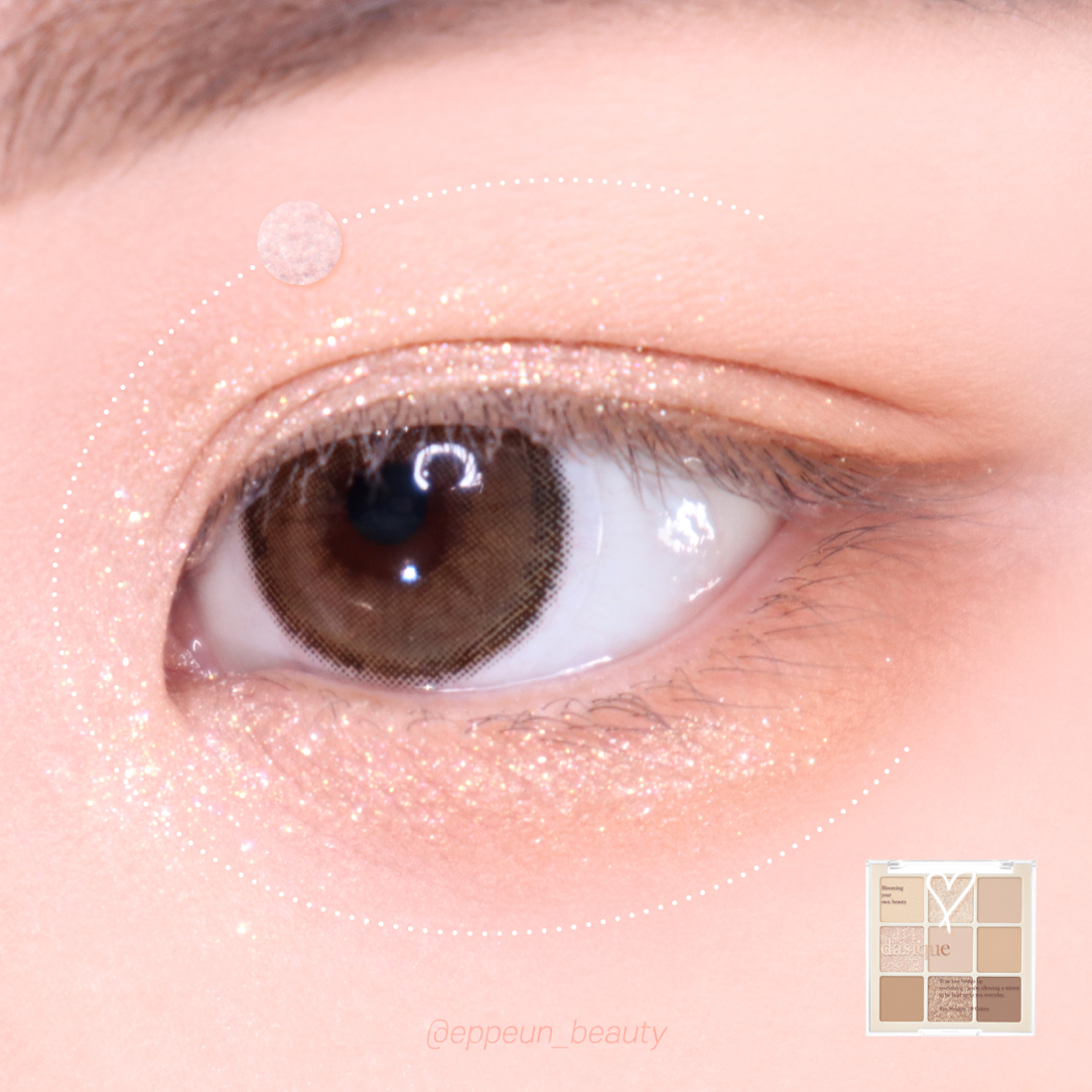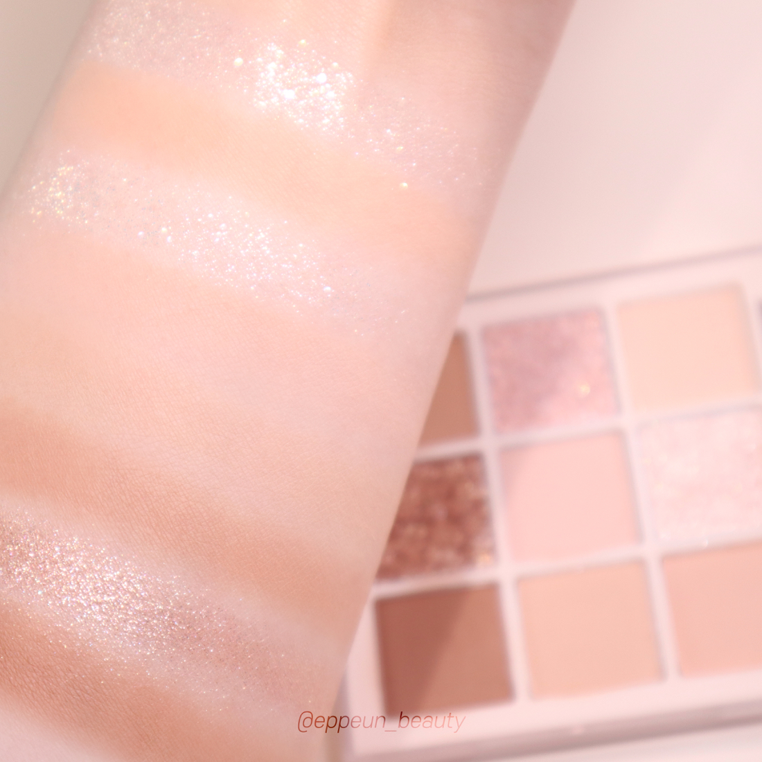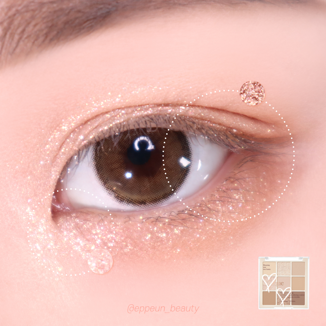 베이지톤 쉐이드 안에 부드러운 스킨톤 베이스부터 소프트 브라운 톤 음영, 영롱하게 빛나는 다채로운 색감의 글리터들까지! 제품 컨셉 살리면서도 데일리로 잘 쓸 수 있는 컬러구성이면서도 예쁘기까지한 팔레트!