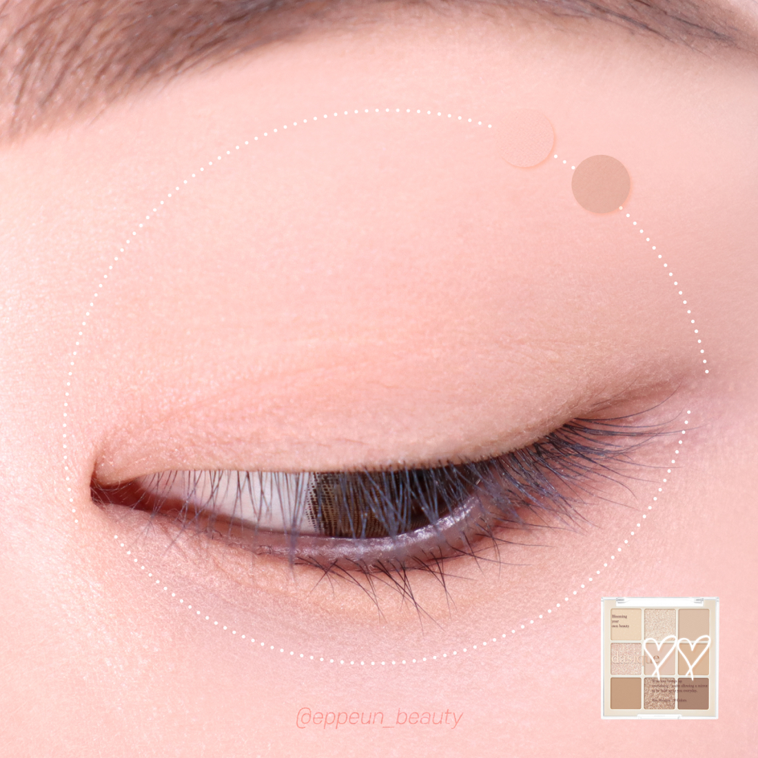 4번 밀크 파우더와 5번 밀크 브라운 활용해서 기본 베이스 섀도우 깔아줍니다~! 4번 밀크 파우더 컬러만 사용하려다가 따뜻한 느낌이 덜한 것 같아서 5번 밀크 브라운 덧발라 준 것! 이건 본인 스킨톤에 따라서 잘 선택해서 발라주세요.