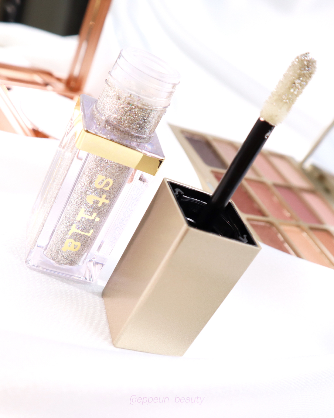 NO.1 펄장인 스틸라 글리터 제품답다! 이전에 키튼카르마, 펄리나, 돌리쉬 리뷰한적 있었는데 이번에는 차갑고 투명한 느낌뿜뿜하는 메이크업룩을 완성을 위해 다이아몬드 더스트 색상으로 데려왔다.