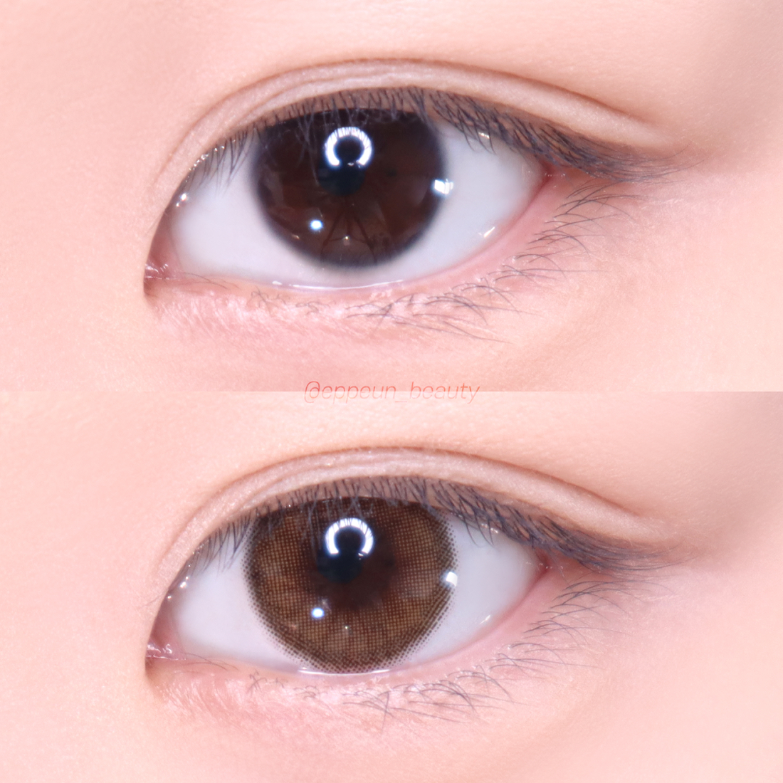 비비링 렌즈 착용 전후 차이만 비교해봐도 그렇게 차이가 크지 않음. 참고로 글쓴이는 눈동자 크기 그렇게 큰편은 아니다. 렌즈가 적당히 톤업되어 브라운 색감이 올라오는게 너~무 예쁜 비비링 브라운.