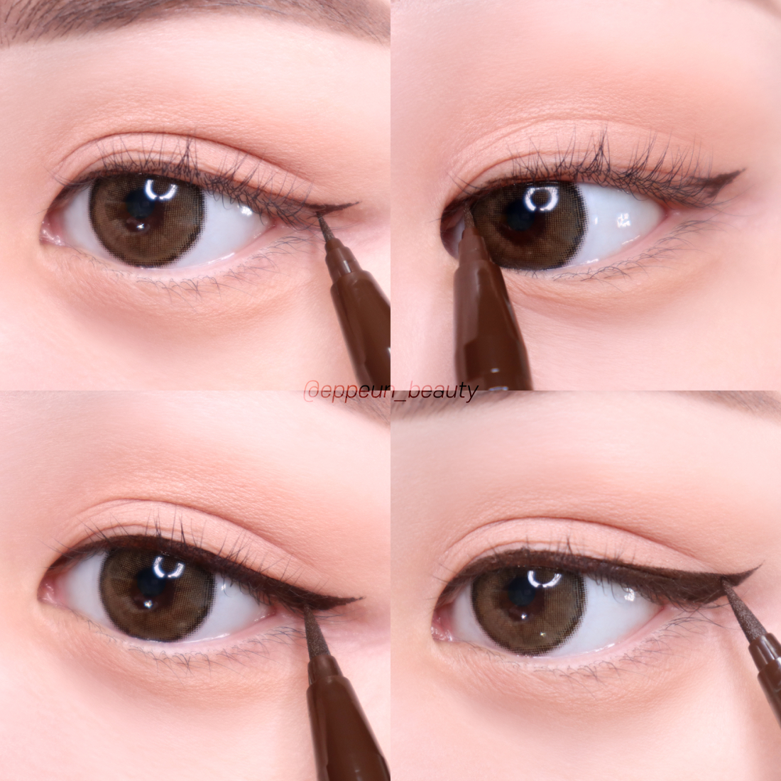 브러쉬에 따라 그리는 부위, 아이라인 연출법 등 글쓴이 취향대로(편한대로) 사용해보도록 하겠다. 튜토리얼에 사용된 아이라이너 컬러는 대부분 많이 사용하실 것 같아서 다크브라운 사용해봤습니다~!^^