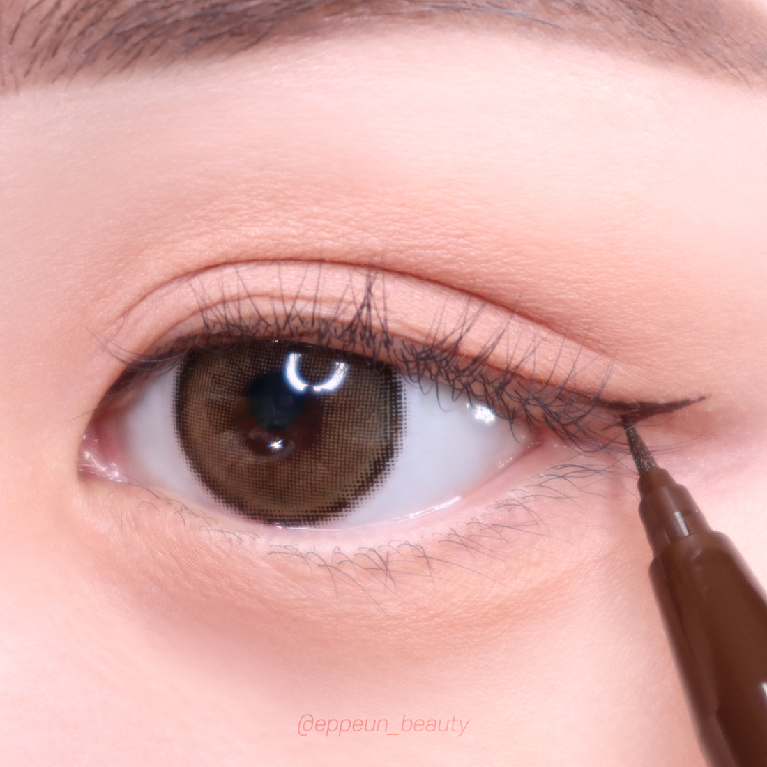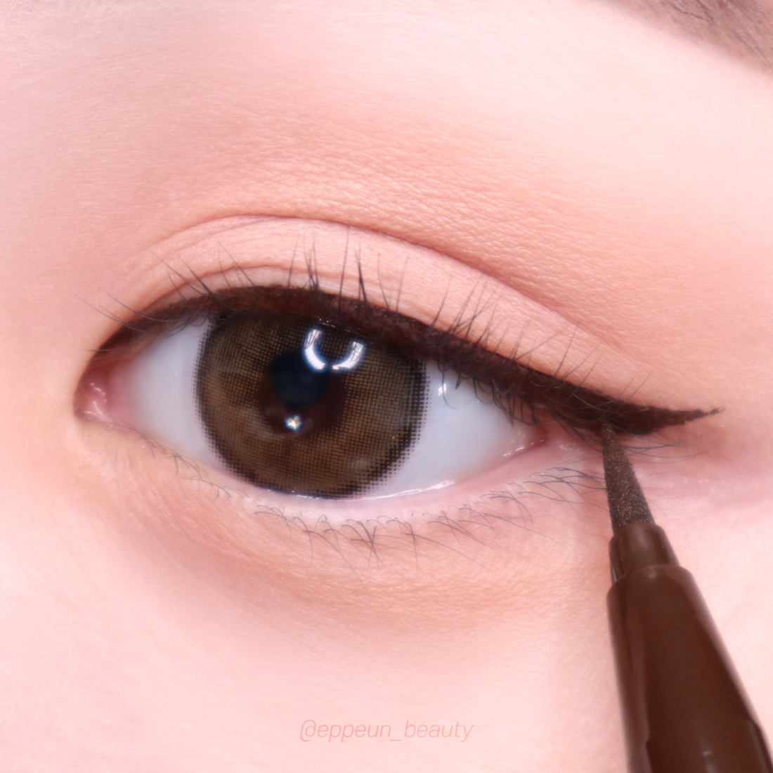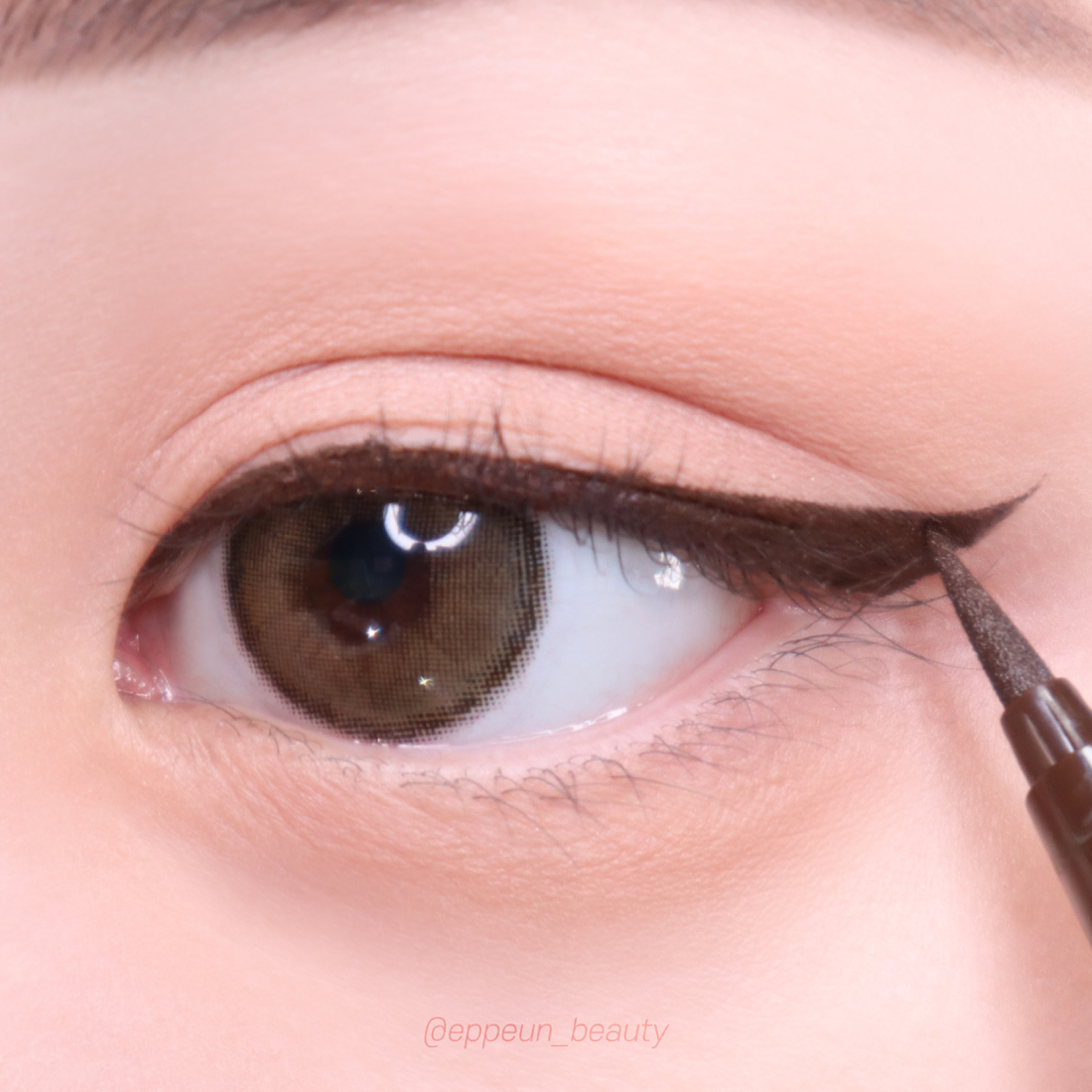오리지널팁을 활용해 눈꼬리쪽을 좀 더 원하는 모양을 잡아가며 넓고 길게 빼줍니다. 발림성 부드러러워 라인이 뚝뚝 끊기지 않고 자연스럽게 이어지고 브러쉬팁 크기가 상대적으로 큰편이라 리퀴드액도 시원하게 잘 묻어나와서 굿굿! 다크브라운 아이라이너 활용한 아이라인은 이렇게 완성!