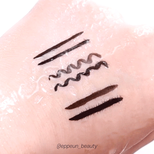 듀얼 리퀴드 아이라이너 물에 강한편인데 막 그렇게 되게 파워풀(?)한 느낌의 강력한 워터프루프 기능이 있는 아이라이너는 아니다. 뿌리는 물에는 그래도 지워짐 덜해보이는데 젖은 부위 박박 문지르면 씻겨져 나감.