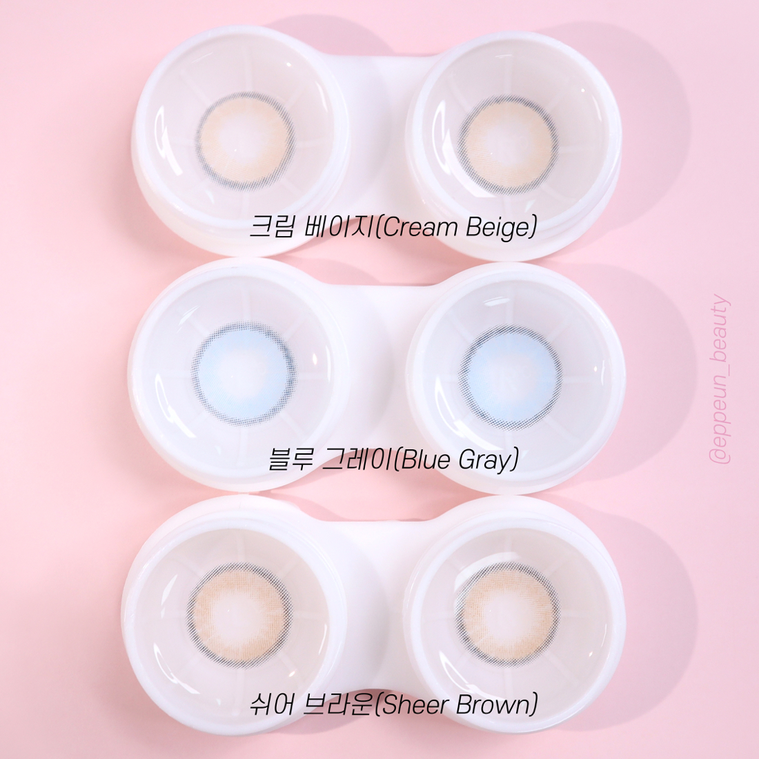 어디에서도 볼 수 없는 유니크한 컬러! 쉬폰 같이 부드러운 크림 베이지 컬러와 청색 써클라인의 조화로 눈동자를 한 층 더 밝고 화사하게 만들어주는 크림베이지.