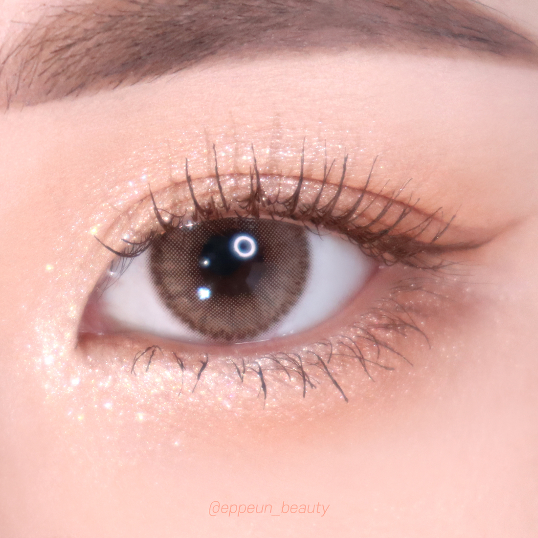 이제 제일 굵고 반짝이는 밝은 펄땡이 활용해서 눈에 좀 더 화사함+입체감+눈확장효과 제대로 해줘보겠습니다. 스윗시리얼 팔레트 중에서도 제일 다채롭고 화려한 굵은 글리터 펄에 속하는 허니 아몬드 컬러를 활용해서 아이메이크업에 반짝임을 더욱 극대화시켜줍니다. 스윗시리얼 활용한 쉐이드 단계는 이 단계까지가 끝!