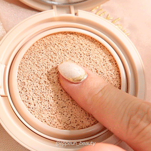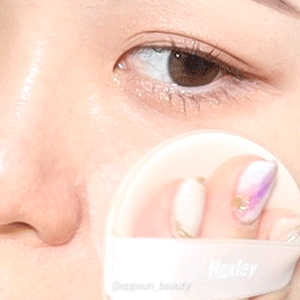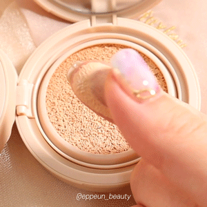 헉슬리 커버쿠션의 NEW 컬러 뉴트럴 쿨톤 컬러들과 텍스처 살펴보았으니 이제 본격적으로 쿠션 얼굴에 펴 발라 보겠습니다~! 퍼프로 쿠션액을 적당량 묻혀주세요~! 쿠션 내용물이 좀 많이 묻어 나오는 편이라 힘 조절 잘하시길^^!