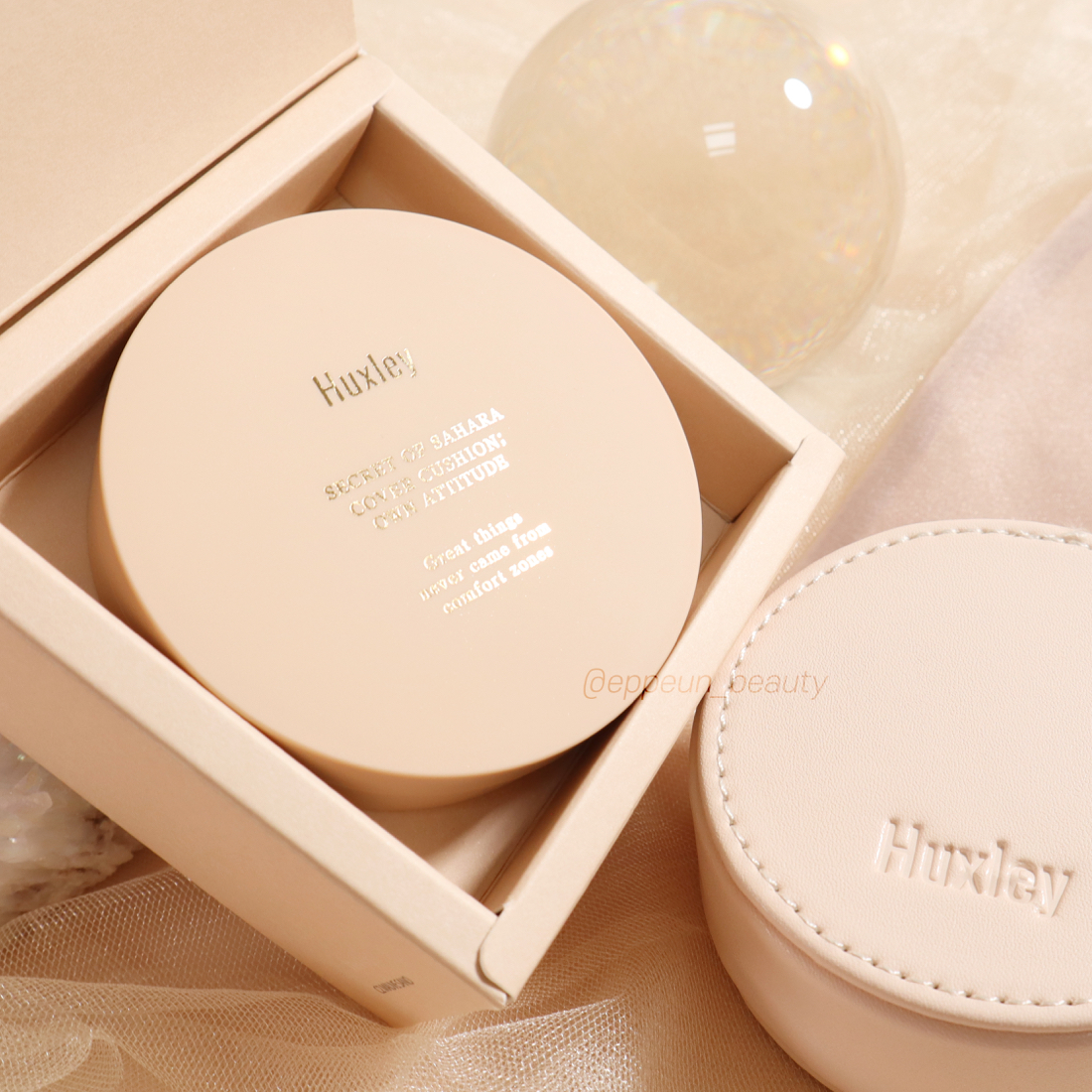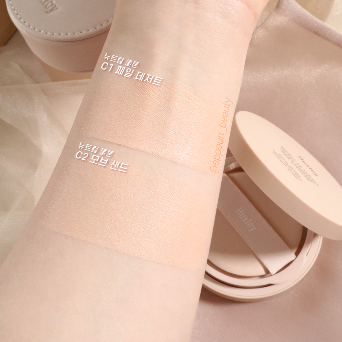 헉슬리 쿠션은 모이스트 쿠션, 커버 쿠션 두가지 버전이 있는데 리뷰할 제품은 커버쿠션. 기존 컬러에서 최근 뉴트럴 쿨톤 컬러 2가지 페일 데저트와 모브 샌드가 새롭게 추가되었다.