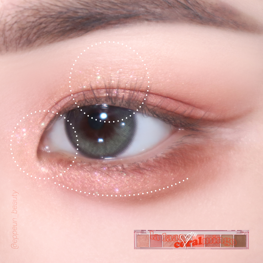 골든빛의 코랄 펄감이 은은하게 살아있는 베이스 쉬머 컬러 골든코랄버블 사용해 눈 앞머리쪽과 애교살 눈두덩 젤 튀어나온 쪽을 밝혀준다. 베이스+음영 다 발라주고 저렇게 밝은 컬러로 포인트 주면 눈이 좀 더 트여보이고 커보이고 입체적이게 보여서 굿굿.