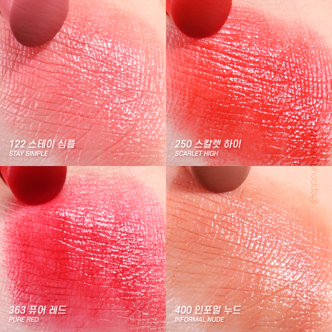 122 스테이심플 / 250 스칼렛하이/ 363 퓨어레드 / 400 인포멀누드