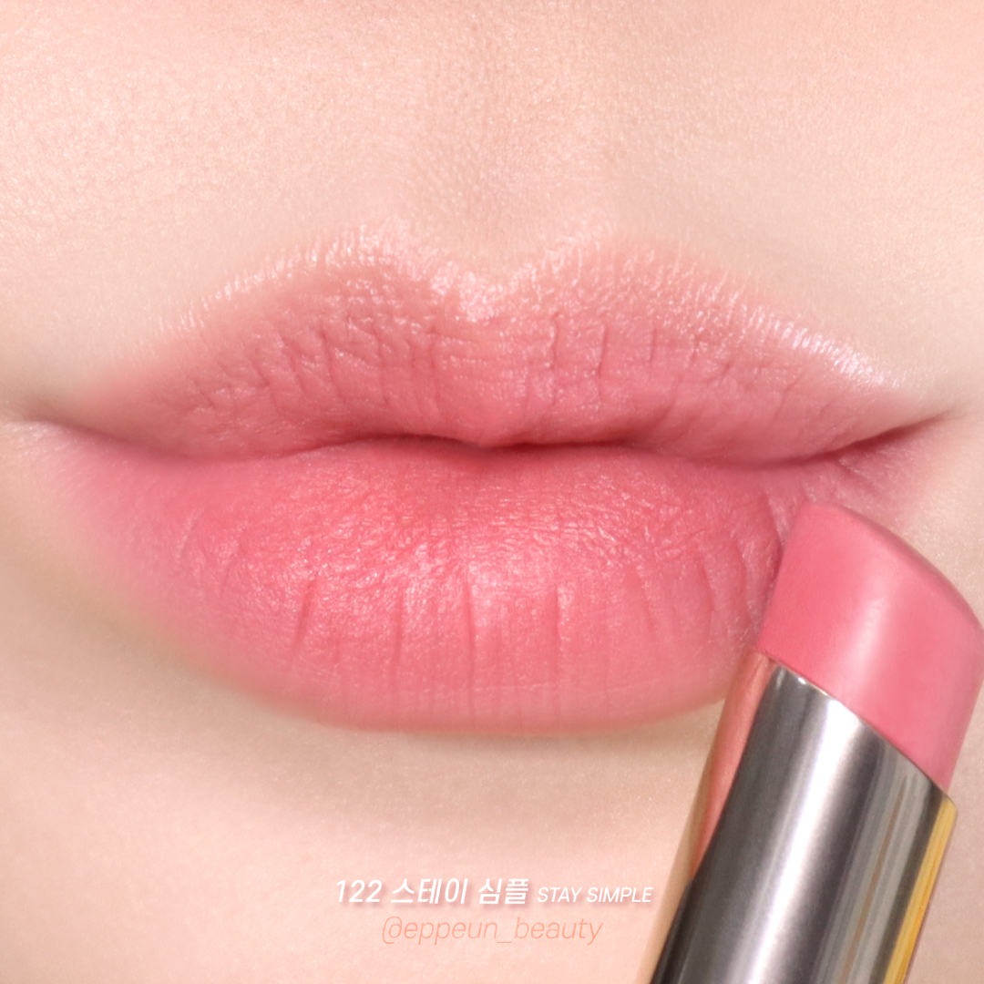 먼저 살펴볼 컬러는 122 스테이 심플! 푸른기 쫙-빠진 여리여리한 쿨핑크 컬러다. 블로그 포스팅 전 인스타에 올렸었는데 반응이 제일 좋았던 컬러이기도! 헤라 루즈 홀릭 쉬어 매트 립 중 밝은 컬러 중에선 제일 쿨한 여리핑크 컬러!