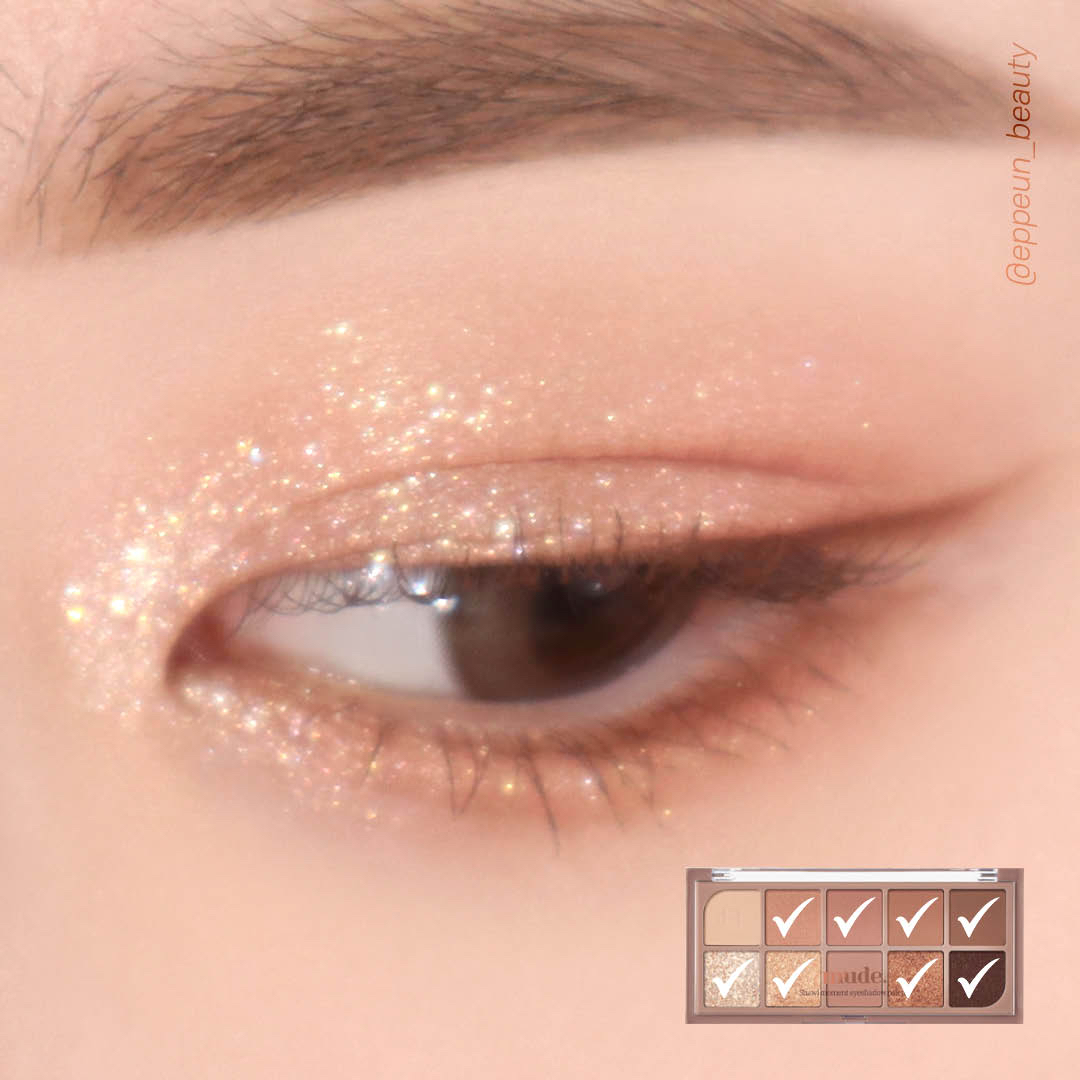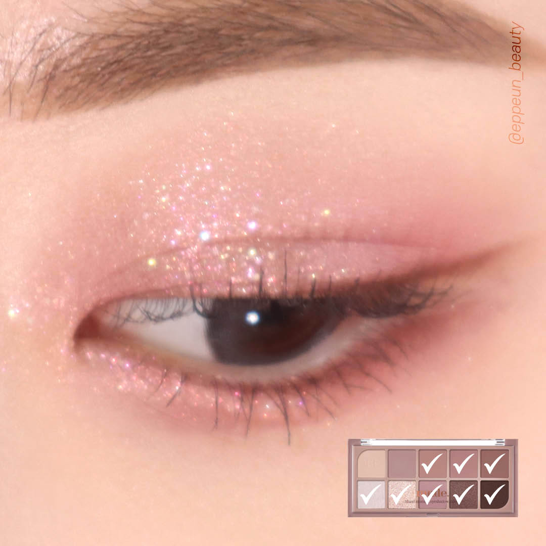 뮤드 숄모먼트 섀도우 팔레트 웜메모리 활용한 겨울클리어의 코랄빛이 살짝 감도는 베이지 아이메이크업룩!