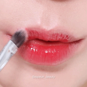 입술 안쪽에 먼저 틴트 얇게 슥 한번 바른다음 립브러쉬 활용해 얇게 펴발라줍니다~!