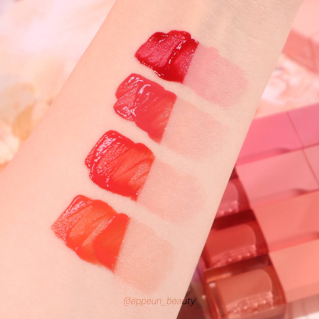 클리오 듀이시럽틴트는 대체로 봄꽃 연상되는 생기발랄한 컬러들로 이루어져 있음. 채도도 살짝 높은 편이다. 4가지 컬러 구성에 웜쿨컬러 나름 사이 좋게 나왔음. 봄신상이라 그런가 봄웜분들은 웬만하면 다 잘 어울리실 것 같은 생기뿜뿜 컬러들이다.