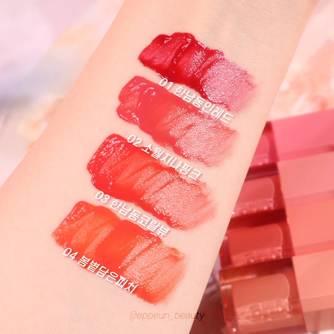 오늘은 클리오 듀이시럽틴트 전색상 1호 한남동인레드, 2호 소월지나핑크, 3호 한남동코랄뷰, 4호 봄볕담은피치 발색리뷰 진행할 예정!